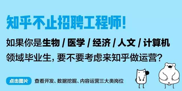 技术方面,知乎的后台、前台、iOS、安卓都在招研发工程师。大部分研发岗位都在北京,少部分开发岗位设立在成都。运营方面,我们招聘多个领域的运营,比如生物、计算机、商业、人文,特别欢迎在这些领域有专业积累的同学来应聘,比如我们自己就有法学本科毕业的来做法学运营,心理学毕业的来做心理学运营。
