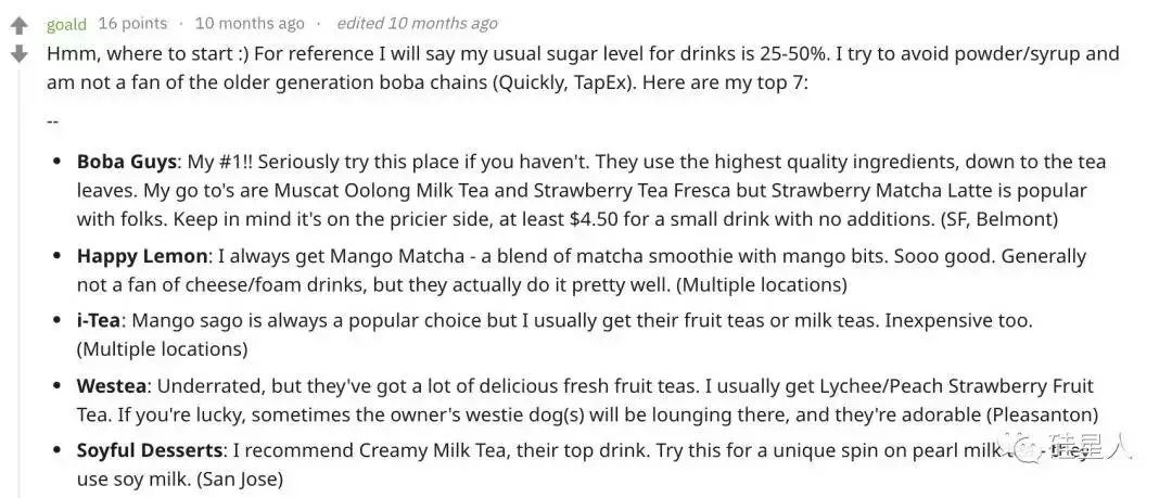 “Cupertino 那家贡茶里的珍珠是加了黑糖的,跟别家不一样,识货的人一尝就知道。”