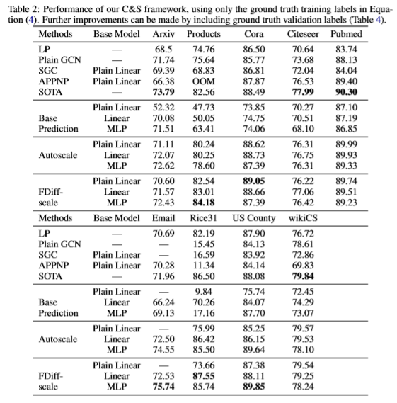 尽管如此,本文发现即使是简单的标签传播(忽略了特征)在许多基准测试中都表现得出奇地好。这就为组合两个预测能力的正交提供了动力,一个来自节点特征(忽略图结构),另一个来自直接在预测中使用已知标签。