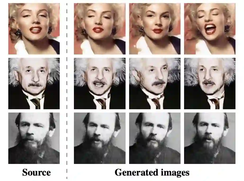 更牛逼的是,该技术完全无需3D建模,仅需一张图片就能训练出惟妙惟肖的动画。研究人员称这种学习方式为“few-shot learning"。