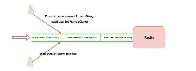 但是需要注意的是 pipeline 中的命令并不是原子性执行的,也就是说管道中的命令到达 Redis 服务器的时候可能会被其他的命令穿插。