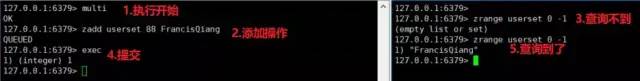 discard 清除在这个事务中放入队列的所有命令,即解除整个事务。