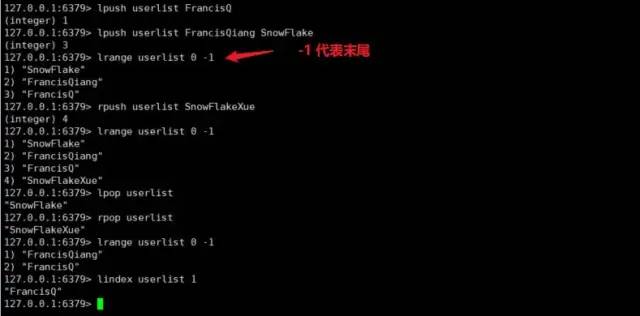 lindex key index 获取指定索引的元素 O(n)谨慎使用