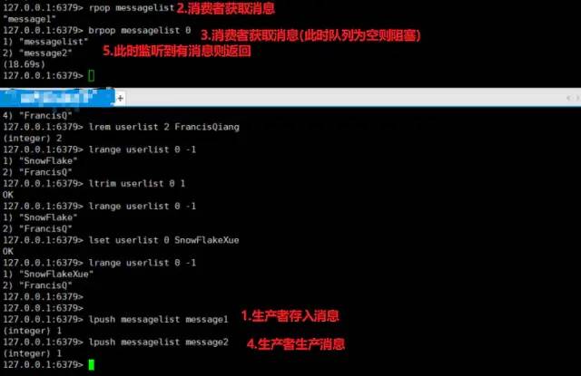 brpop key timeout 没有则阻塞(timeout指定阻塞时间 为0代表永久) 这两个可以用来实现消费者生产者