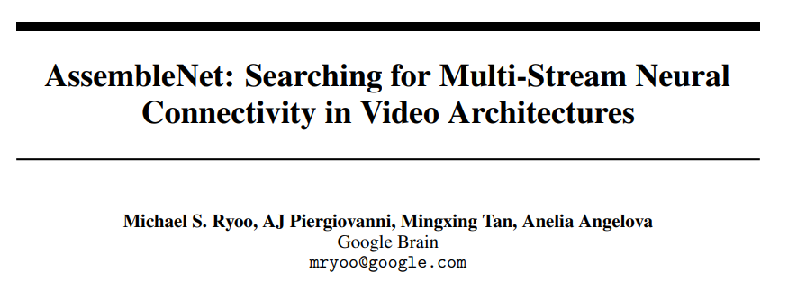 在论文「AssembleNet: Searching for Multi-Stream Neural Connectivity in Video Architectures (https://arxiv.org/abs/1905.13209)」中,我们研究了一种将具有不同输入模态(如 RGB 和光流)的不同的子网络和时间分辨率融合在一起的新方法。