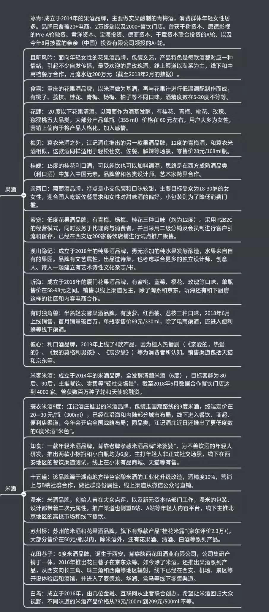 果酒冰青曾获千树资本、唐德影视的Pre-A轮融资、君洋资本、宝海投资、德商资本、千章资本联合投资的A轮、以及今年8月披露的亲亲(中国)投资有限公司领投的A+轮;米客米酒曾获数百万种子轮和天使轮融资;