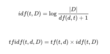 在词袋的想法上加上一点:语料(数据集的全部文档)中罕见但在当前文档中出现的单词可能更重要。因此,增加领域特定单词的权重,以将它们和常用词区分开了,是很合理的。这一方法称为TF-IDF(词频-逆向文档频率)。默认选项为: