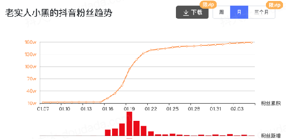 就这样一套连续的操作,老实人小黑的粉丝爆涨到162W+。