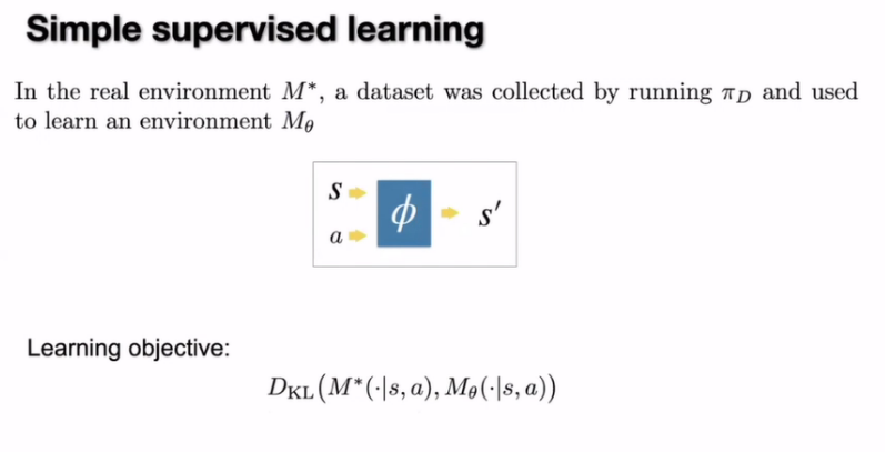 我们把我们历史上做了哪些状态、有了哪些状态、做了哪些决策作为我们的输入,然后把它下面变到哪些状态作为我们的标记,那么我们可以简单的训练一个监督学习。比如说我们可以用 KL作为我们的目标来训练监督学习的一个模型,那么这样我们构造出来的模拟器会怎么样呢?