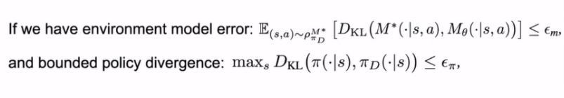 实际上从我们最新的结果可以看得到,当我们构建的模型在KL上面有一个损失有一个界限以后,可以看得到它最后的结果。也就是说我们在模拟器里面去评估一个策略和在真实的环境下面去评估一个策略,它们两个之间的差别有多大,就是下面这个式子所展现出来的。