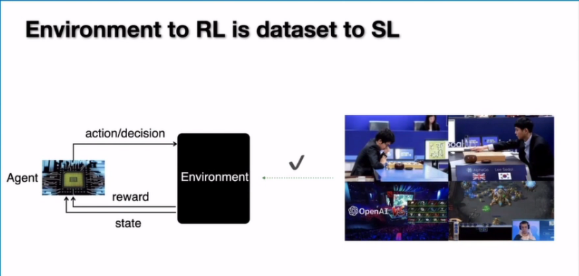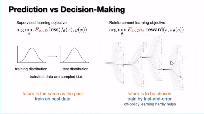 比如说下围棋,我们选择的不同走法会把我们带到不同的未来,那么要找到最好的未来光靠一个固定的数据集就不太可行,比如说在阿法狗的第一个版本里面用了到人类下棋的数据集,但是在后面就没有用到。