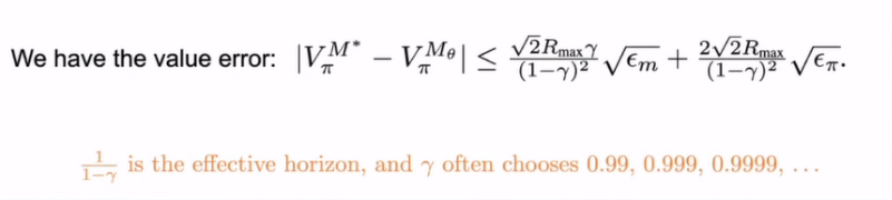 在公式右边我们可以看到是effective horizon 的平方,这实际上是一个很大的数,如果我们用这样一个方法去学一个模拟器出来,我们面临的问题就是当我们多走了几步以后,它的误差会迅速的放大,会导致我们最后学出来模型的策略很难用。