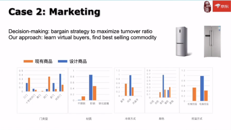 比如说我们看第一个图上面,它会预测现在卖双开门的冰箱比较多,但是实际上我们的模拟器里面求解出来的结果认为喜欢的用户可能不是那么多,反而是对开门的冰箱可能会卖得更好。