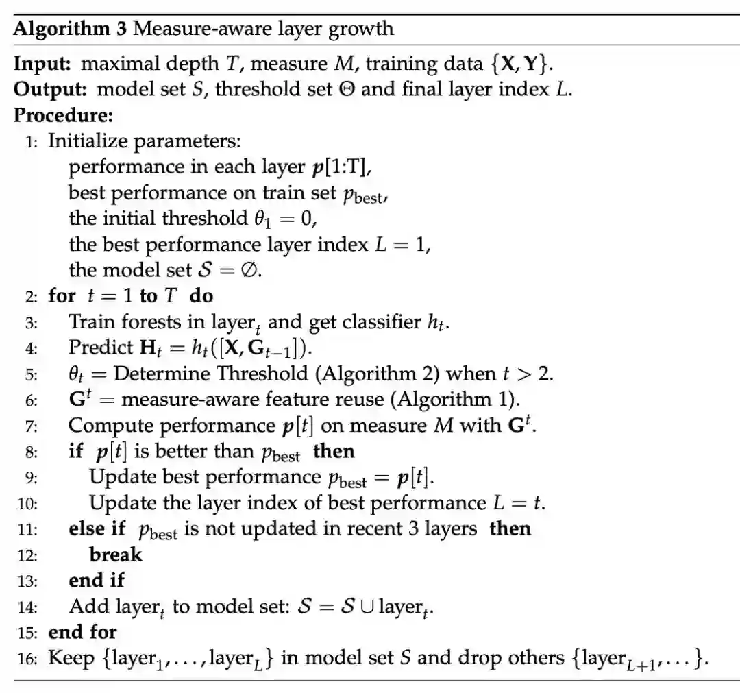 算法3总结了用于MLDF训练的measure-aware layer growth的过程。
