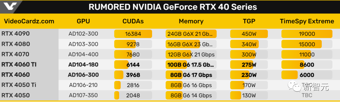从国外媒体预测的主要参数和性能看,新旗舰RTX 4090已经比RTX 3090 Ti高出多达66%,RTX 4080几乎是RTX 3080的两倍,RTX 4070则几乎相当于RTX 3090或对面的RX 6900 XT了。
