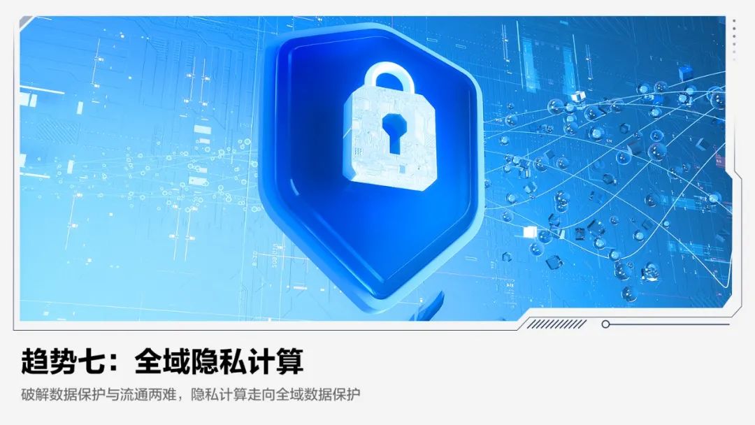 。全域隐私计算将成为安全领域的基石性技术。随着专用芯片、加密算法、白盒化、数据信托等技术融合发展,隐私计算有望实现全域数据安全保护,为数字时代保驾护航。