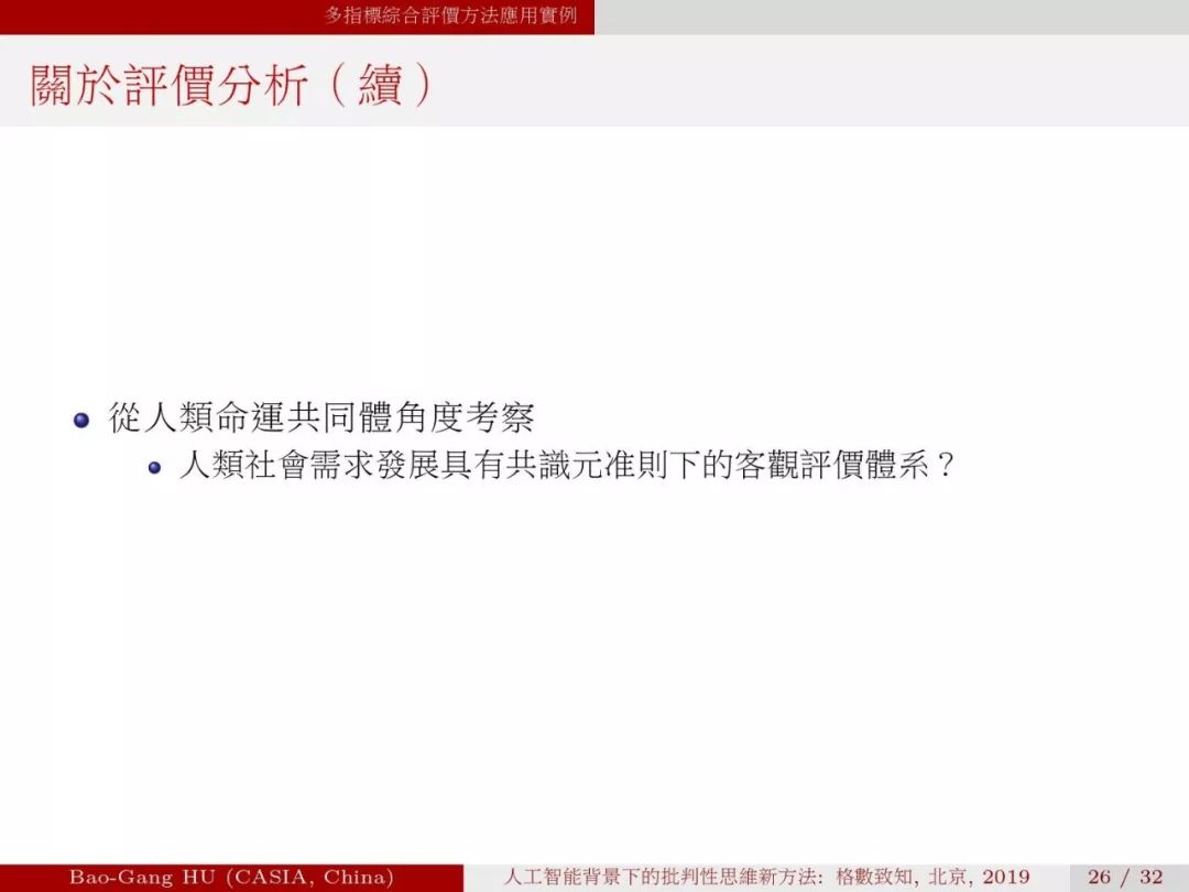 本讲稿强调了一种“格数致知”方法。其中给出了一个实例是多指标综合排名世界各国生活质量。这是典型的无标准答案的评价分析问题。目前国际学术界或机构多是常规方式采用加权平均方法实施此类分析。有关分析将有助于我们以数据方式了解真相与问题。让数据,事实,时间,与逻辑说话也是批判性思维中追求客观性的基础。