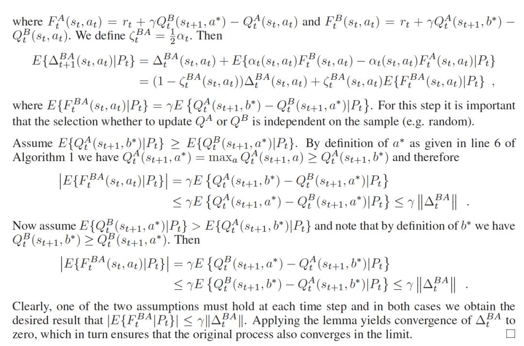 的一个估计,一般的,将期望理解为对同一实验的所有可能运行的平均,而不是(通常在强化学习环境中使用)对下一个状态的期望,根据原理部分,Double Q-learning将使用两个函数
