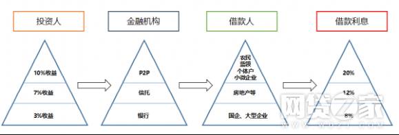 P2P进入的几乎是一个空白市场,放贷利息高,给投资人利息也高,投资人收益甚至达到13%。
