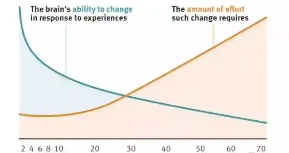 ▲大脑从经验中学习的能力随着年龄的增长而减少