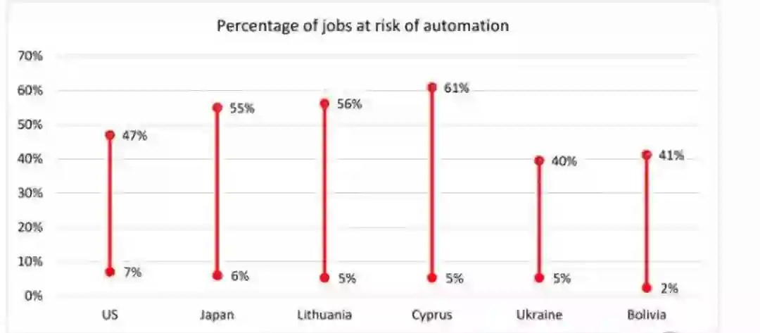 发达经济体和中等收入国家的自动化正在导致制造业的下岗现象,那些负责例行任务的工人是最容易被新技术取代的,相应的,技术催生的新工种需求又往往需要高级人力资本(human capital)。