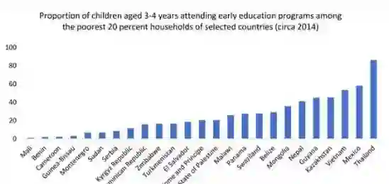 ▲在许多国家,来自弱势背景的儿童最不可能参加儿童早期教育计划