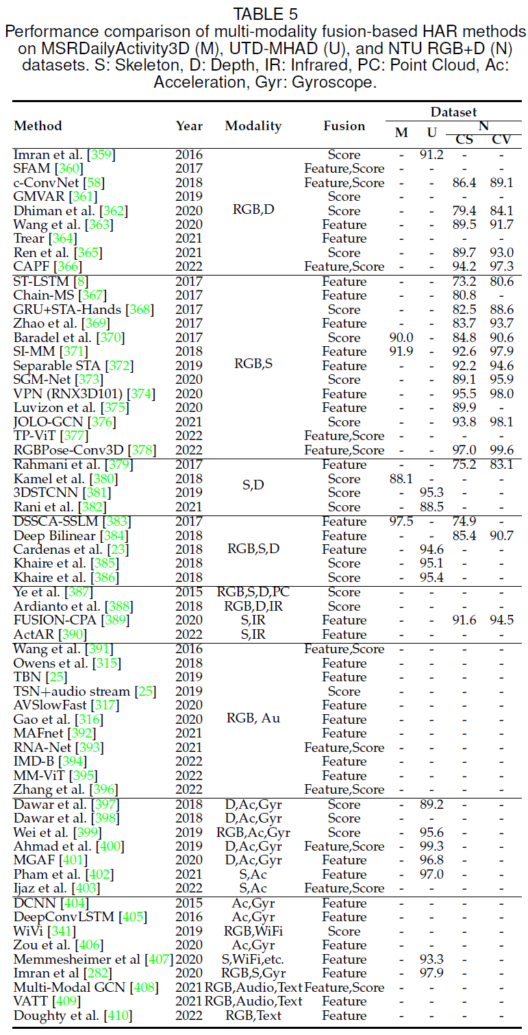 (1)该论文回顾了基于单模态的行为识别方法,这些模态包括 RGB、骨架、深度、红外序列、点云、事件流、音频、加速信号、雷达和 WiFi。