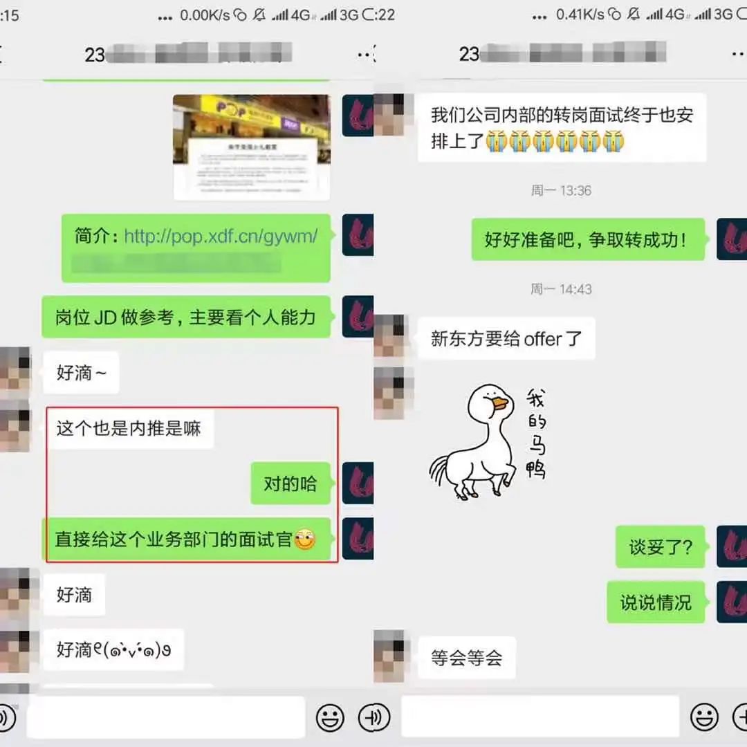 J同学:通过我们的内推,拿到新东方的产品offer,同时内部的转岗考核也顺利通过。
