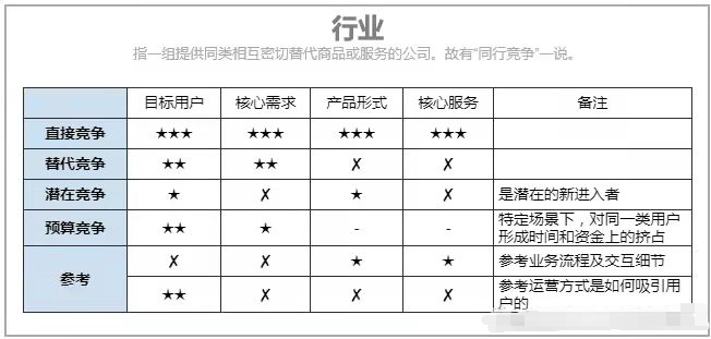 当你们想做一款产品时,却发现已经有直接竞争者、替代竞争者、潜在竞争者、预算竞争者了,而且还有一些可参考的友商。