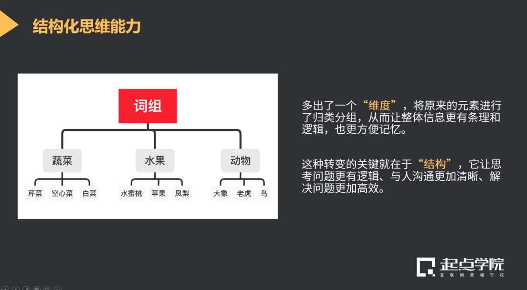 锻炼逻辑性思维最好的方式就是结构化思维,就是将事物结构化,从整体到局部、层级分明地引导思维和表达的一种思考模式,传达出一种有层次、有条理、脉络清晰的感觉。当然,这个也是需要不断的实践和练习~