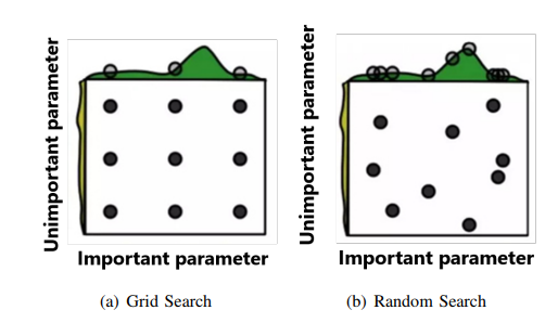 网格和随机搜索(Grid & Random Search):网格搜索将可能的超参数空间划分为规则的间隔(网格),然后为网格上的所有值训练模型,并选择性能最佳的一个,而随机搜索,顾名思义,随机选择一组超参数。