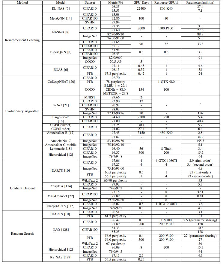 强化学习(Reinforcement Learning):基于RL的算法由两部分组成。一是控制器,它是一个RNN,用于在不同的时期生成不同的子网络;二是奖励网络,用于训练和评估生成的子网络并使用 更新RNN控制器的奖励(例如准确性)。