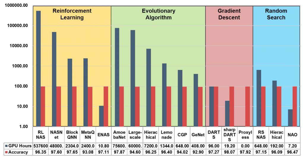 主流NAS算法在CIFAR10数据集上性能和效果比较