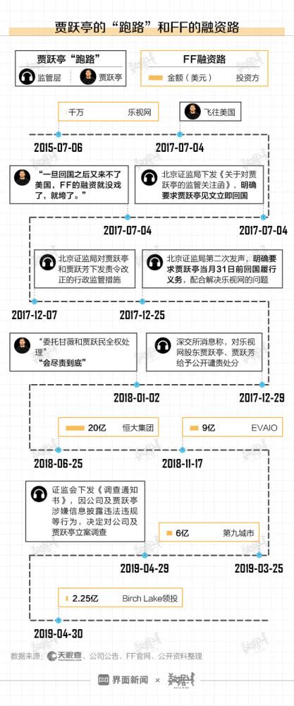 贾跃亭总能得到幸运女神眷顾,每一次“回国”,都能赶上一次融资,使其专心投身FF。乐视网4月29日发布公告称,公司及第一大股东贾跃亭分别于4月26日下午、4月29日收到证监会《调查通知书》,因公司及贾跃亭涉嫌信息披露违法违规等行为,决定对公司及贾跃亭先生立案调查。在贾跃亭收到立案通知书的第二天,FF就传出喜讯,获得一笔2.25亿美元的债权及信托融资。靠FF翻盘?但乐视已无力回天。虽然此前FF称,在和独立估值顾问Houlihan Lokey合作后确定了FF的技术价值最高达12.5亿美元。但回顾FF造车,一路坎坷。