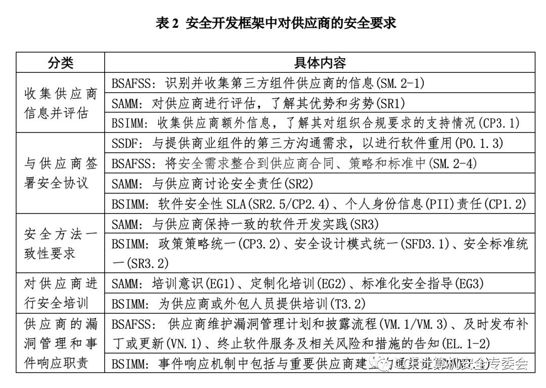 小结:多个框架都要求对供应商进行评估和签署安全协议;BSIMM对供应商的要求最为全面,涉及所有5个方面;上述这些对供应商的要求贯穿于软件开发生命周期的全过程,在安全层面将供应商与组织捆绑在一起。