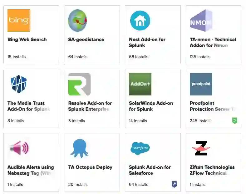 对于特定领域的数据获取,Splunk是用Add-on的形式。Splunk 的App市场上有超过600个不同种类的Add-on。
