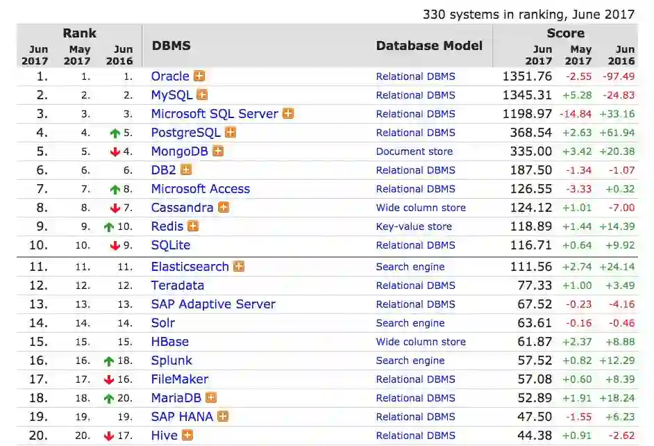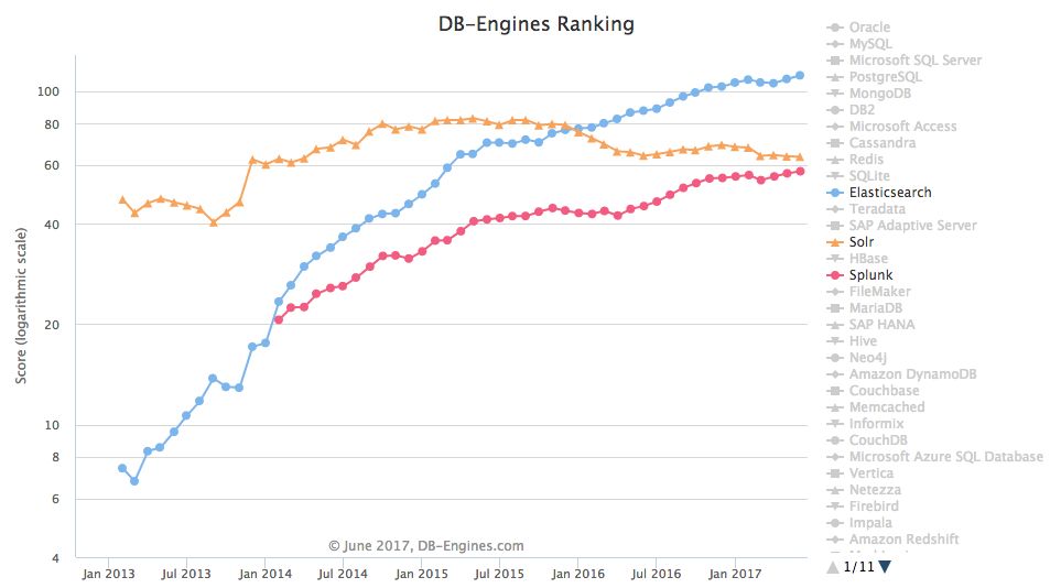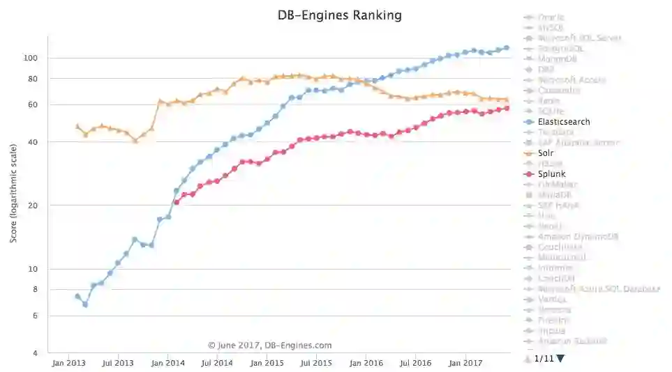 根据最新的数据库引擎排名显示,Elastic,Solr和Splunk分别占据了数据库搜索引擎的前三位。