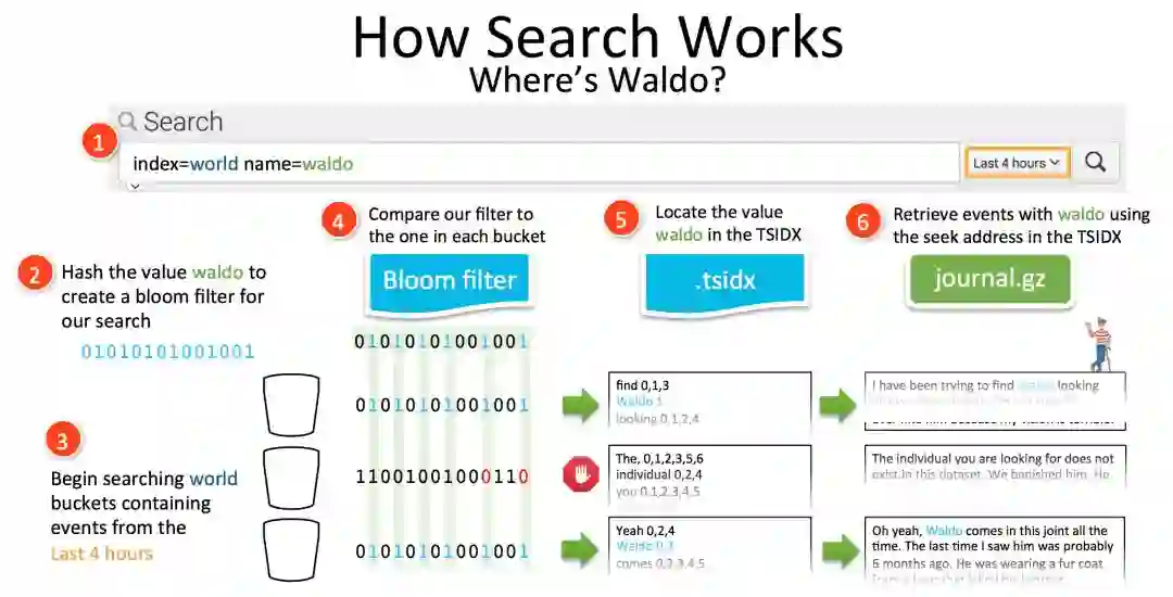 Splunk的核心同样是倒排表,推荐大家看这篇去年Splunk Conf上的介绍,Behind the Magnifying Glass: How Search Works