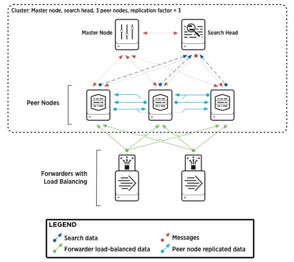 如上图所示,Splunk的indexer集群主要由三种角色: