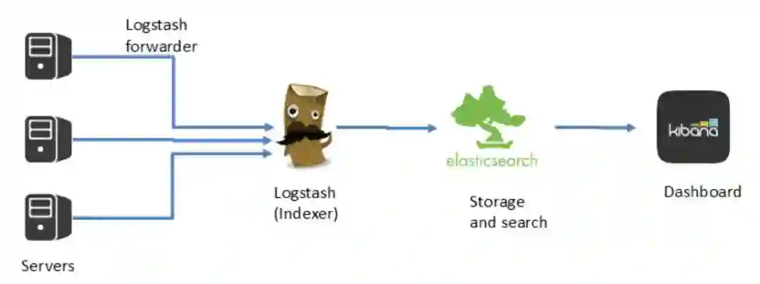 在实际运用中,logstash 进程会被分为两个不同的角色。运行在应用服务器上的,尽量减轻运行压力,只做读取和转发,这个角色叫做 shipper;运行在独立服务器上,完成数据解析处理,负责写入 Elasticsearch 的角色,叫 indexer。