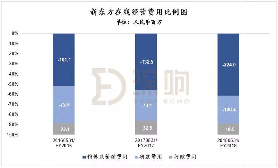 但即便在谨慎投入新业务的情况下,在线教育本身在抢市场阶段的推广开支,也还是让在线业务的利润表现不那么好看。相较于已经靠口碑传播多年,也早就建立起了成熟代理体系的线下业务,高昂的市场营销推广费用对在线教育的盈利能力是个拖累。