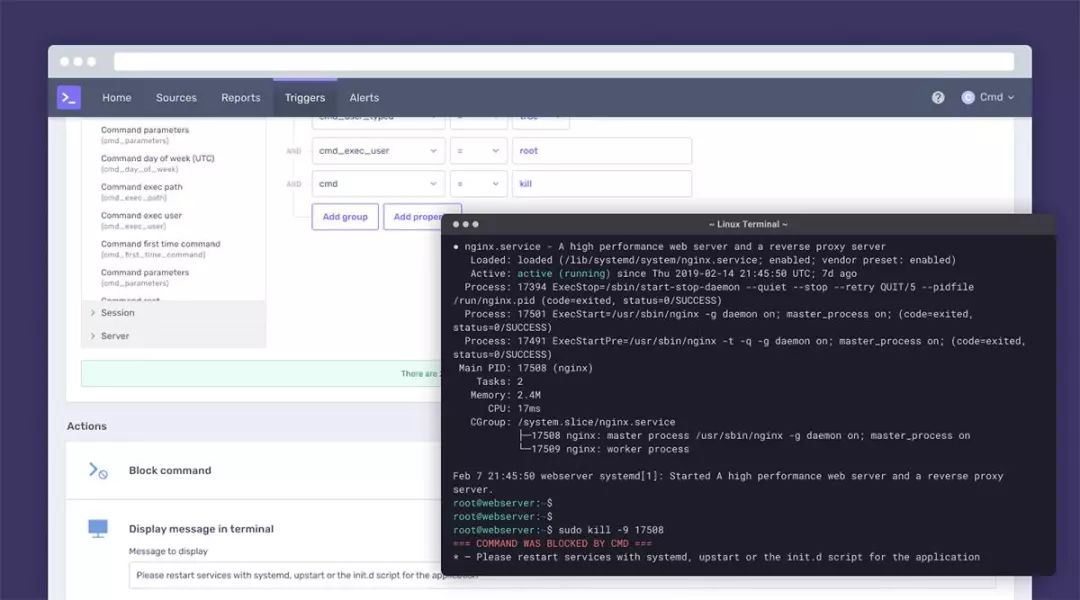 Cmd 由同名公司开发,专注于云应用。鉴于越来越多的应用迁移到依赖于 Linux 的云环境中,而可用工具的缺口使得难以充分实施所需的安全性。除此以外,Cmd 还可用于管理和保护本地系统。