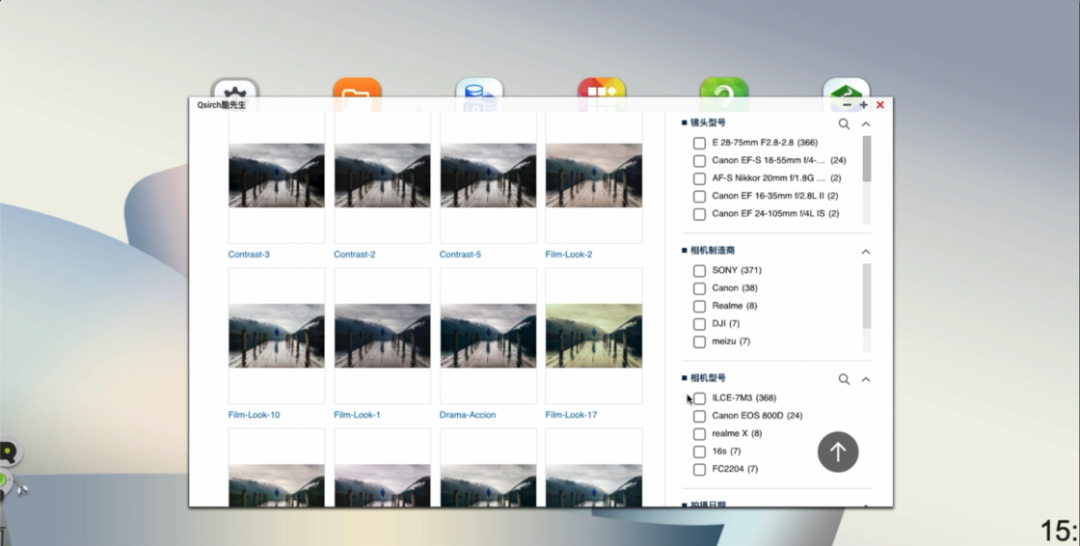 我实际用下来觉得这个功能真的非常强大。它的筛选细项里面可以精确到使用的哪台相机、哪个镜头、光圈多少、快门多少来寻找文件。