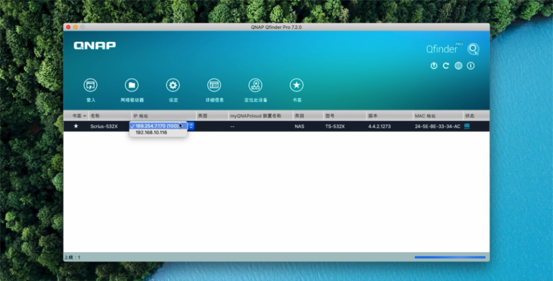 我使用的是 QANP 自家的雷电 3 转万兆转化器,通过雷电 3 连接 Mac,然后通过万兆网线连接 NAS,就可以直接使用了。