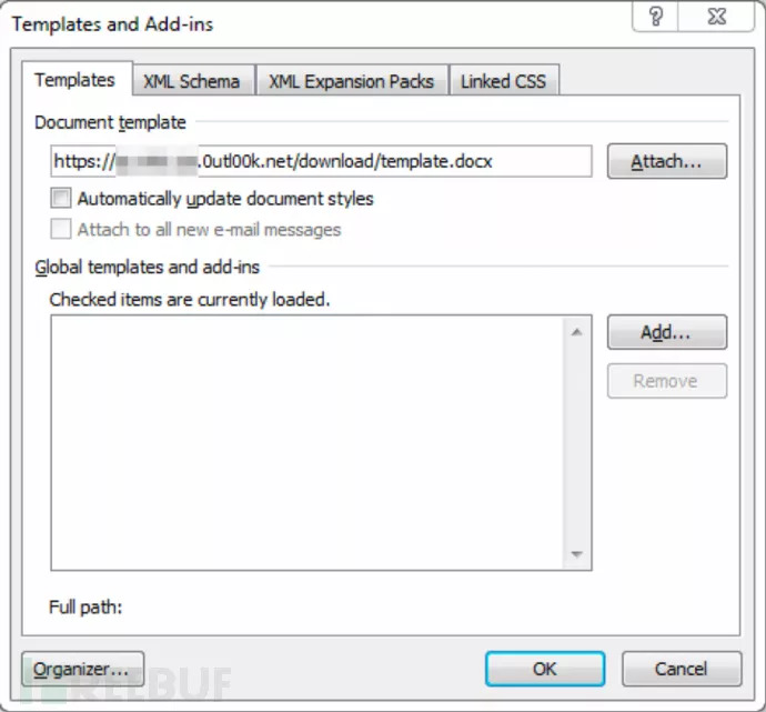 凭据窃取攻击使用了包含恶意Microsoft Office文档的鱼叉式网络钓鱼电子邮件,这些文档利用“attachTemplate”技术从远程服务器加载模板。当尝试加载这个远程模板时,Microsoft Office将显示一个身份验证对话框,要求用户输入登录凭证。在输入之后,这些凭证将被发送到C2服务器,DarkHydrus便是通过这种方式来窃取用户帐户凭证的。