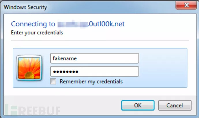 为了验证恶意文档的功能,我们使用了Phishery的C2服务器,并打开了DarkHydrus在2018年6月的攻击中使用的Word文档。当出现验证对话框时,我们输入“fakename”和“fakepass”作为凭证,如图6所示,然后按回车键。