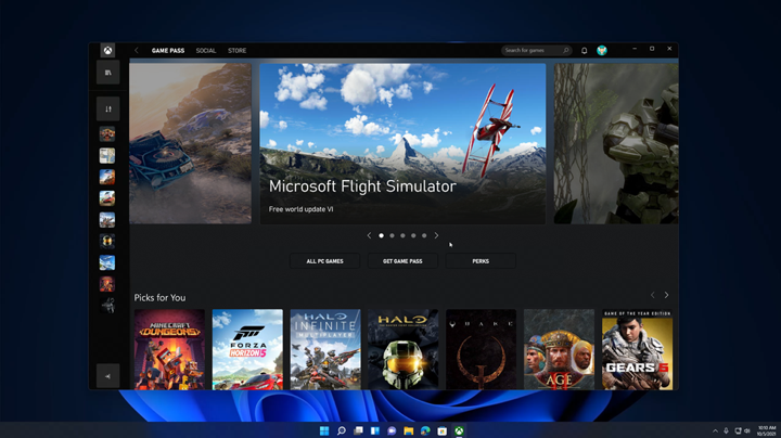 Windows 11 还内置了 Xbox 应用程序。借助于 Xbox 应用程序,用户可以通过 Xbox Game Pass for PC [v] 浏览、下载和畅玩超过百款优秀的 PC 游戏。随着今年10月的到来,Xbox 史上最大的游戏发布季也将拉开序幕,即将到来的游戏包括了将于10月28日上市的《帝国时代4》、11 月9 日上市的《极限竞速地平线5》和12月8日上市的《光环无限》,以上三款大作都将在上市首日登陆 Xbox Game Pass Ultimate [v] 和Xbox Game Pass for PC [v]。借助于 Xbox 应用程序的 Xbox Cloud Gaming [i](Beta 测试版 [3])功能,Xbox Game Pass Ultimate [v] 会员无需下载,即可在 PC 上畅玩超过百款 Xbox 主机游戏。
