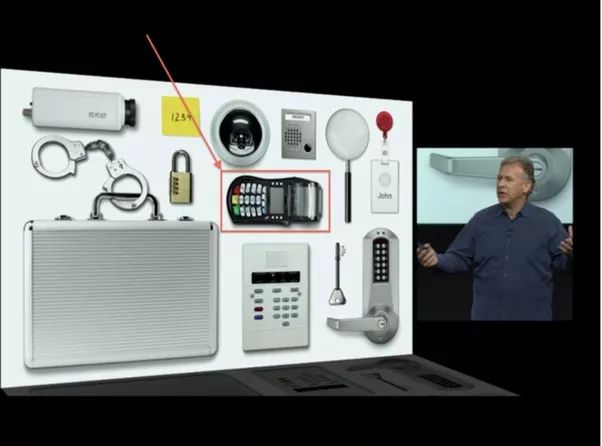 2012 年,Phil 在公布 TouchID 时也提供了类似的线索——屏幕上出现了一台 Hypercom 设备 [0],其暗示 TouchID 有望提供刷卡器这类功能。当时在我看来,这几乎 100% 代表着 TouchID 将在 Apple Pay 当中有所作为。但包括初创企业在内的很多行业参与者都认为我疯了,他们认定 TouchID 在 Apple Pay 出现后将被淘汰。而这一次,我觉得历史又将再次重演。