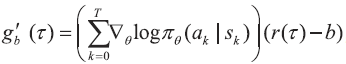 注意到,∇θR(θ) 实际上是一个随机变量g(τ) 的期望。我们对g(τ) 进行若干次独立采样, 可以获得对其期望的一个估计。如果能在不改变期望的前提下减少g(τ) 的方差,则能有效提高对其期望估计的效率。我们注意到, 所以有
