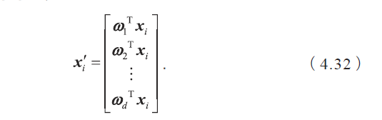 (4)取特征值前 d 大的对应的特征向量,通过以下映射将n 维样本映射到d 维